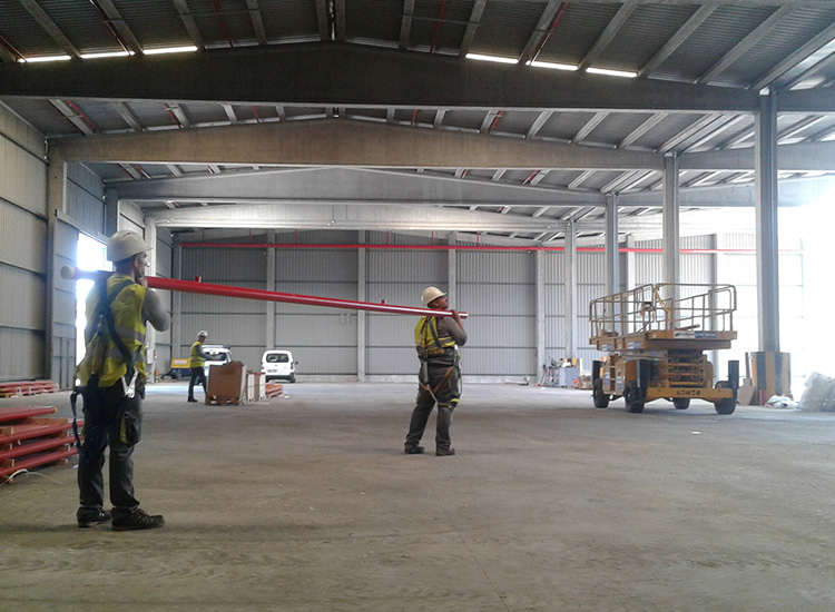 El alcance de los trabajos han constituido un conjunto de sistemas que combinados entre si componen la protección contra incendios de una nave destinada a almacenamiento logístico principalmente de bobinas de papel para la industria papelera y del cartón.